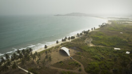 Located on Ghana’s coast, the Haduwa Arts & Culture Institute is an independent place that offers artists space to work freely and involves the residents of the surrounding fishing villages. [applied] Foreign Affairs was invited to design the stage space for Haduwa’s initiatives. This project included an interdiciplinary approach were various stage situations were examined on site together with students from the School of Performing Arts at the University of Ghana, Accra. Based on this, [A]FA designed a roof and floor landscape in which each performance can be oriented differently. The building consists of a bamboo dome with three open arches facing different directions. It is large enough to accommodate diverse cultural, artistic and everyday programs. One of its spatial qualities is to offer protection against external influences such as sun, wind and rain, but at the same time to include them. The primary construction of the roof is a grid shell made entirely of bamboo. Their shape is determined by the material properties of the bamboo and its structural, technical and spatial potential.