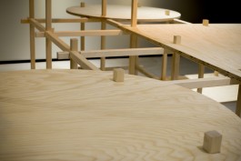 Xyz is a modular pop-up furniture designed with precise interlocking wooden joints. It is dismountable and does not require any additional fasteners. Similar to Japanese wooden houses, this system does not use diagonals for bracing, but rather relies on precise interlocking joints and plywood surfaces for stability. The modular furniture is based on a cubic tatami module ratio (45.5 x 45.5) and is made of solid birch wood beams with pine plywood surfaces. Xyz consists of three different milled beam types. They vary in length depending on the module. Each joint is locked in place by a wedge or precise plywood surfaces with continuous slots. The inserted surfaces appear in various shapes and sizes, creating horizontal surfaces for displaying products and aligning and stabilizing the overall composition.